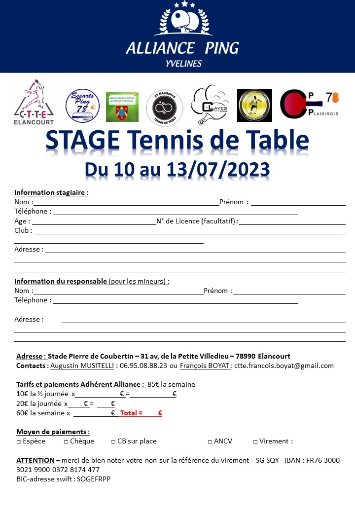 Stage ALLIANCES Juillet 2023 - FORMULAIRE 10 au 13/07