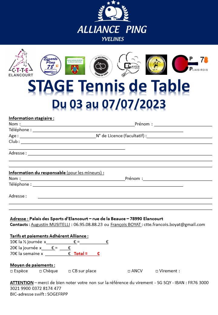Stage ALLIANCES Juillet 2023 - FORMULAIRE 3 au 7/07